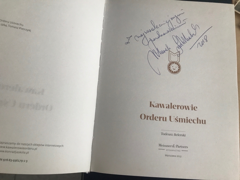 Na pamiątkę dostaliśmy monografię dotyczącą Kawalerów Orderu Uśmiechu z dedykacją.